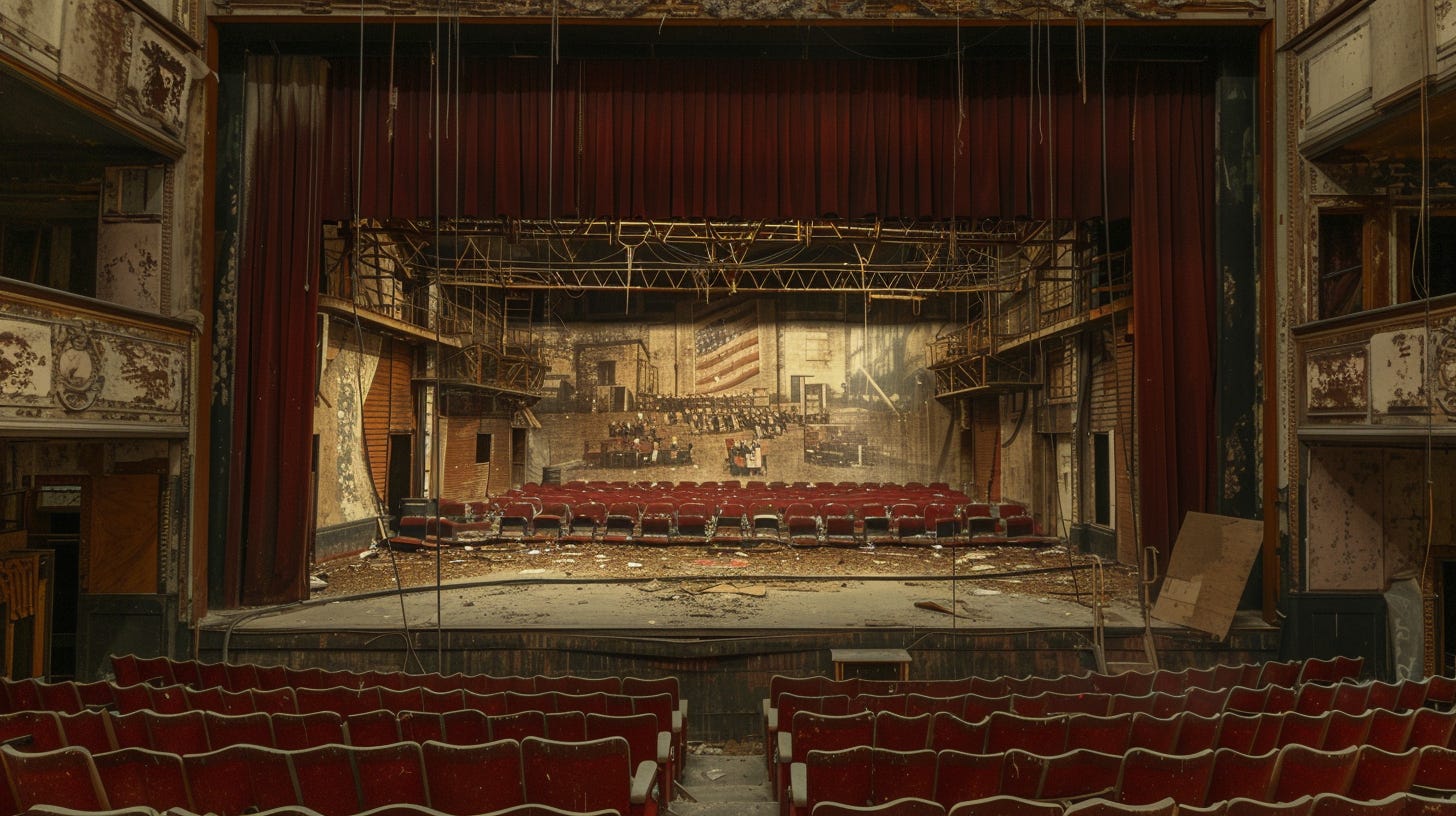This is what 144 years of the same play looks like when you lay it out in sequence. Different faces on the posters. Same theater. Same function. Same result.